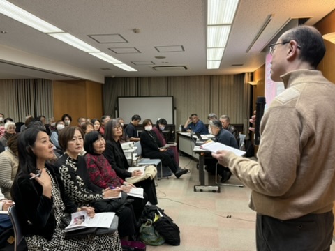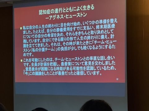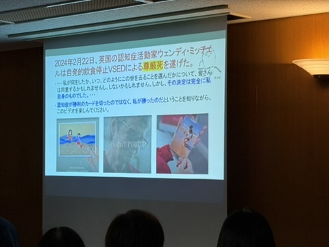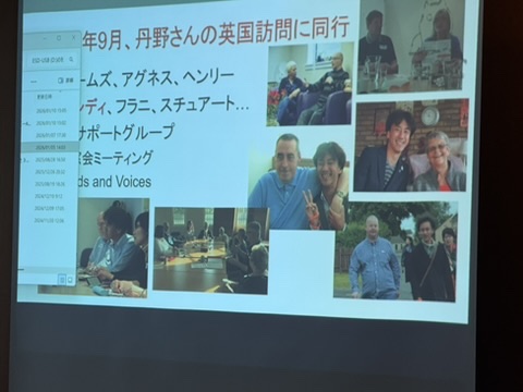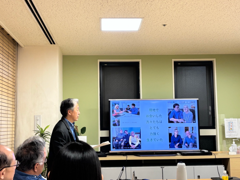 勉強会では、丹野さんご自身の貴重な体験から生まれた考察を中心に、同行された医師や支援者からもご報告をいただきました。丹野さんからは自分自身への多くの問いが語られ、「問い続けることが認知症とともによく生きることではないか」という印象的な発言がありました。英国の認知症ケアの取り組みや、国境を越えた当事者同士の対話から得られた気づきについて、多くの学びを共有する機会となりました。